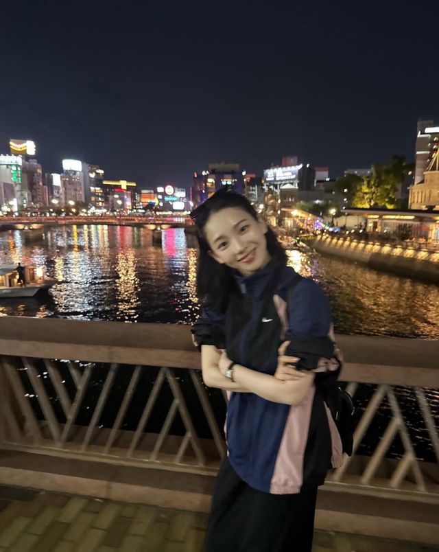 또 다른 사진에서는 밤거리의 불빛을 배경으로 환하게 미소 짓는 모습으로, 투어를 마친 여유로운 기분이 전해졌다.
