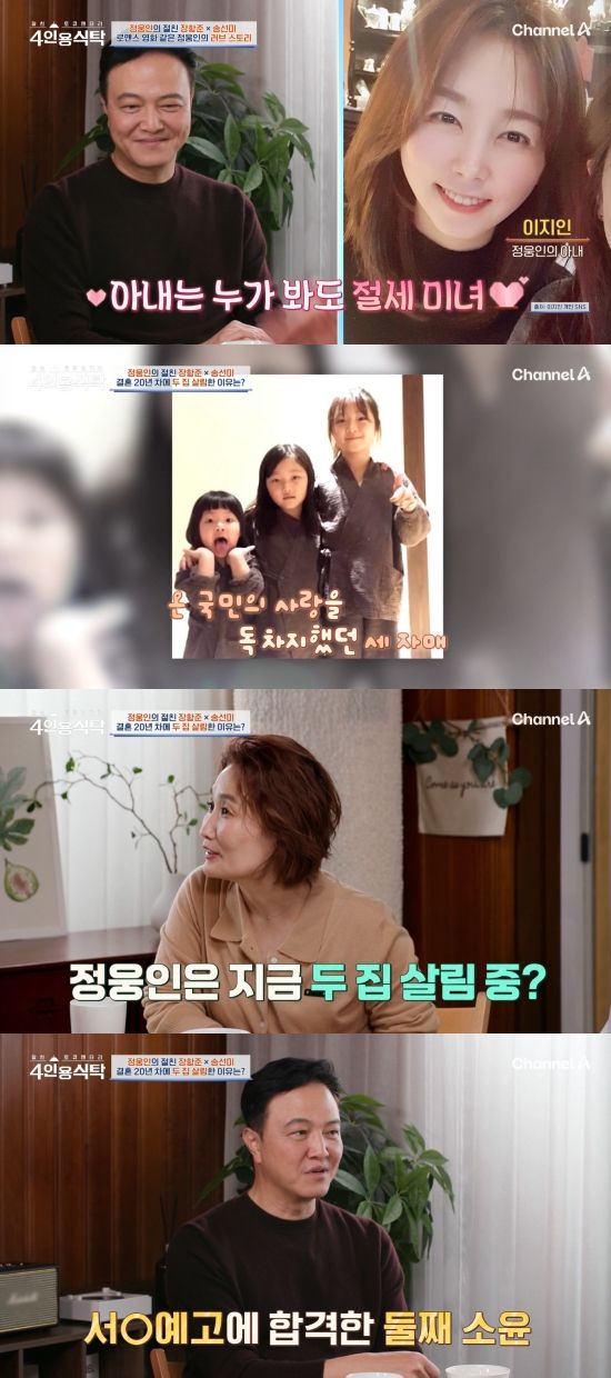 정웅인 이지인 부부는 슬하에 세윤, 소윤, 다윤 세 딸을 두고 있다. 이에 정웅인은 "제가 딸 가진 입장으로 우리 세윤이가 12살 연상을 데려오면 저도 반대할 것 같다"고 너스레를 떨었다.