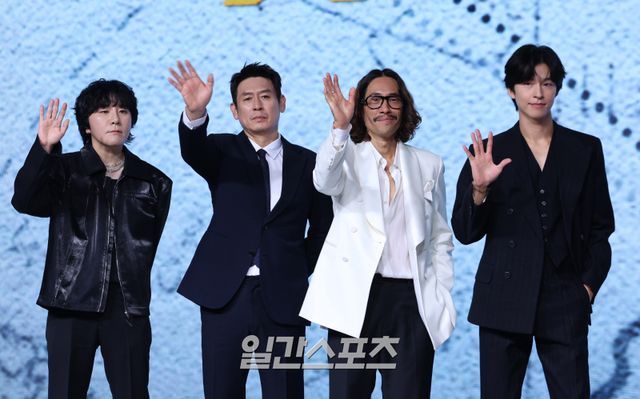 14일 오전 서울 종로구 JW 메리어트 동대문 스퀘어에서 넷플릭스 영화 ‘굿뉴스’ 제작보고회가 진행됐다. 이 자리에는 배우 설경구, 홍경, 류승범과 변성현 감독이 참석했다.