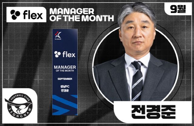 프로축구 K리그2 성남FC 전경준 감독이 2025시즌 9월 ‘flex 이달의 감독상’을 수상했다.