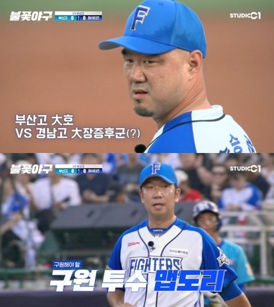 13일 방송된 스튜디오C1 야구 예능 '불꽃야구'에서는 불꽃 파이터즈와 부산고, 두 강팀이 자존심을 건 대결을 펼쳤다.