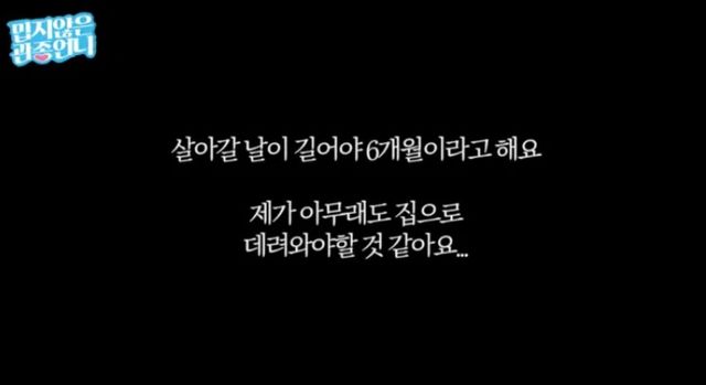 이지혜는 영상 말미에 ‘우리 요다 살아갈 날이 길어야 6개월이라고 한다. 아무래도 집으로 데려와야 할 것 같다. 지금은 산소방에서 혼자 열심히 견뎌내는 중이다. 마음의 준비를 하며 매일이 계속 이어지는 중이다’라는 자막으로 비통한 심정을 전했다.