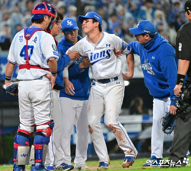 하지만, 8회초 갑작스러운 부상 변수가 발생했다. 삼성 3루수 김영웅이 8회초 1사 뒤 에레디아의 3루수 앞 빗맞은 내야 땅볼을 처리하고자 앞으로 달려나갔다. 끝내 타구 포구에 실패한 김영웅은 순간적으로 허리 부위에 고통을 느끼면서 그라운드로 쓰러졌다. 트레이닝 파트 점검 뒤 곧바로 교체 사인이 나왔을 정도였다. 김영웅은 관계자 부축을 받고서야 간신히 그라운드에서 빠져나왔다.