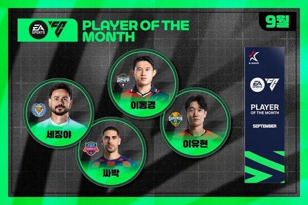프로축구 K리그를 총괄하는 한국프로축구연맹은 2025시즌 9월 'EA SPORTS 이달의 선수상'의 주인공을 선정하는 팬 투표가 오는 16일부터 19일까지 4일간 실시된다고 14일 알렸다.