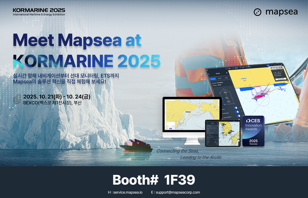 해양 빅데이터 혁신 기업 ㈜맵시(Mapsea)가 기후 변화 시대의 핵심 항로로 부상하는 북극항로 개척에 속도를 낼 혁신 솔루션을 공개하며 해운업계의 이목을 집중시키고 있다. 맵시는 오는 10월 21일부터 24일까지 부산 벡스코에서 열리는 '제24회 국제 조선 및 해양 산업전(KORMARINE 2025·코마린)'에 참가, 인공지능(AI)과 디지털 트윈 기술을 접목한 차세대 북극항로 운항 최적화 기술을 선보인다고 밝혔다.