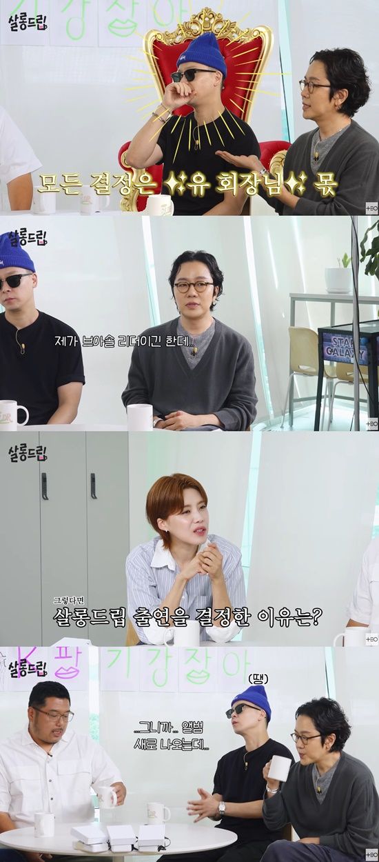 장도연이 “‘살롱드립’에 어떻게 출연하게 됐냐”고 묻자, 정엽은 “제가 브아솔 리더지만 사실상 나얼은 회장님이다. 유 회장이라고 부른다”며 “이번에도 큰 곳에서 공연하다 보니 부담이 됐는지 출연을 결심했다”고 답했다.