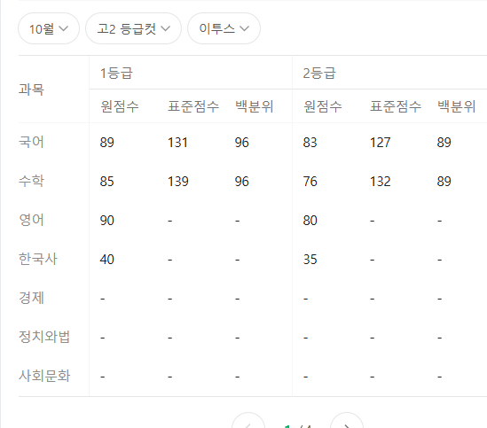 메가스터디의 경우 국어 1등급 90점, 수학 1등급 88점 등이다.