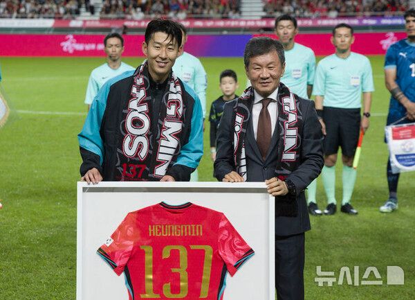 행사엔 한국 축구의 전설 차 전 감독이 직접 방문, 손흥민에게 등번호 '137'이 새겨진 기념 유니폼을 전달해 감동을 더했다.