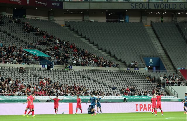 브라질전 패배의 영향일까. 파라과이전 공식 입장 관중은 2만2206명이었다. 브라질전과 비교하면 차이가 컸다. 경기장 내 함성, 파도타기 응원 모두 어색할 정도로 적었다. 대표팀의 단일 홈 경기 관중이 2만명 대에 머문 건 지난 2015년 10월 자메이카전 이후 10년 만이다. 당시 울리 슈틸리케 전 감독이 지휘한 경기에는 2만8105명의 관중이 집결한 바 있다. 손흥민, 이강인(파리 생제르맹) 등 슈퍼스타가 대거 경기장을 누볐음에도, 파라과이전 흥행 부문 성적은 낙제점이었다.