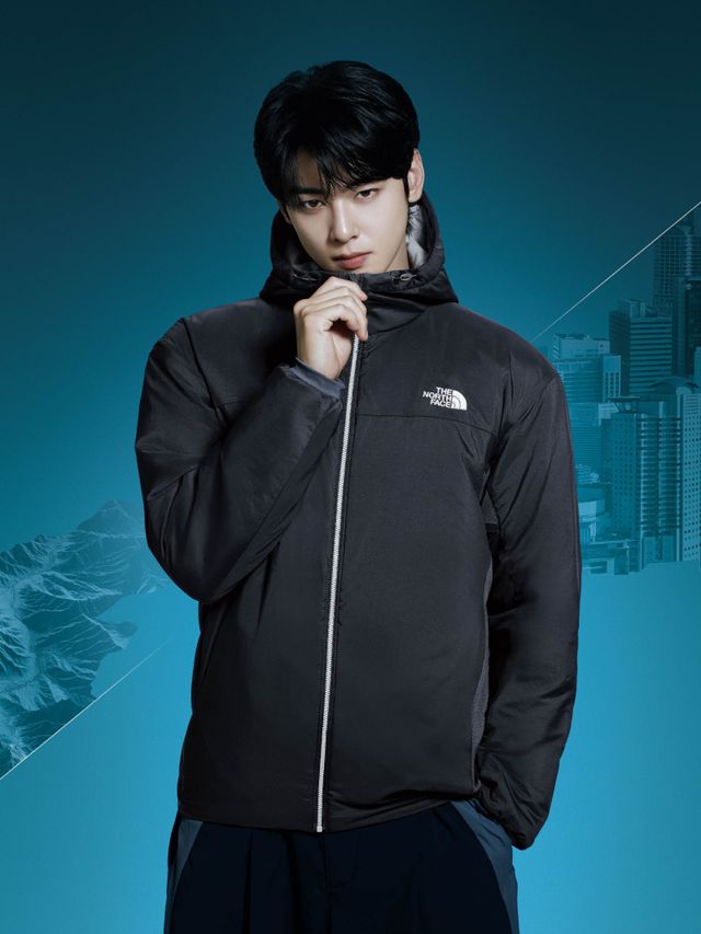 노스페이스의 하이브리드 경량 패딩 ‘부베 재킷’을 착용한 차은우. 퀼팅을 최소화 했다. 노스페이스 제공