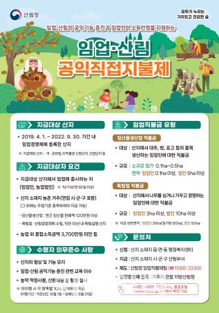 임업직불금을 신속히 지급할 수 있도록 각 시·도에 교부금 지급을 완료했다. 이에 각 시·군·구는 임업직불금 신청자의 계좌 확인 등의 절차를 거쳐 연말까지 순차적으로 임업직불금을 지급할 예정이다.