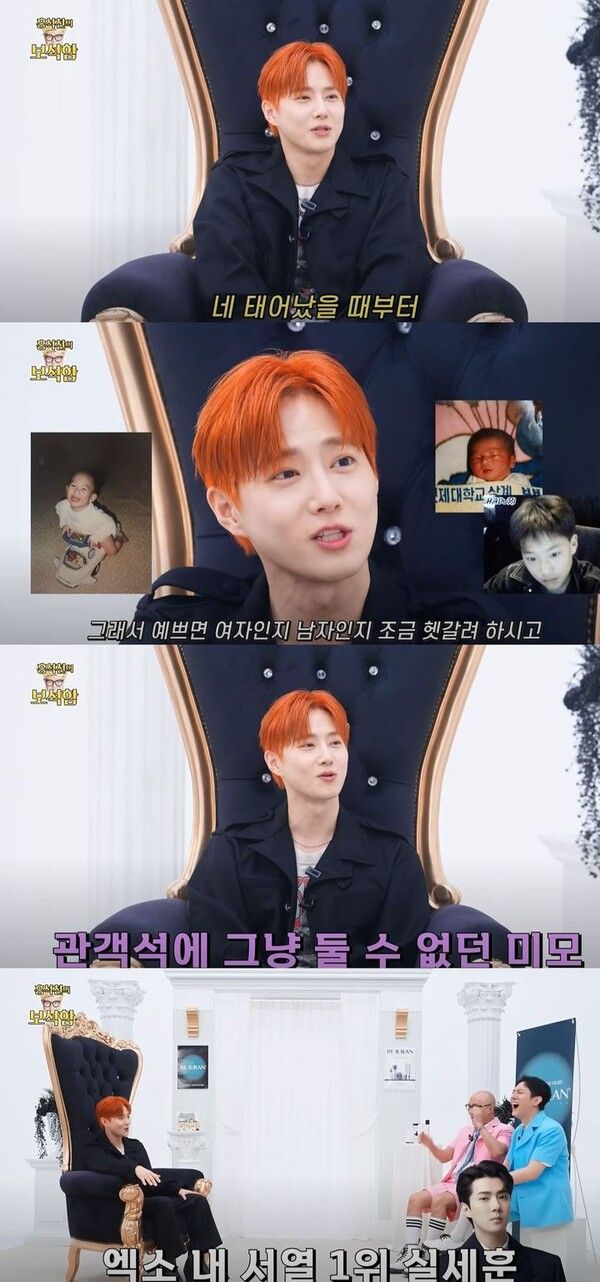 이에 수호는 "태어났을 때부터 잘생겼었다. 어릴 적에 예쁘단 말을 많이 들었다"며 "사람들이 성별을 헷갈려 했다"고 덧붙였다.