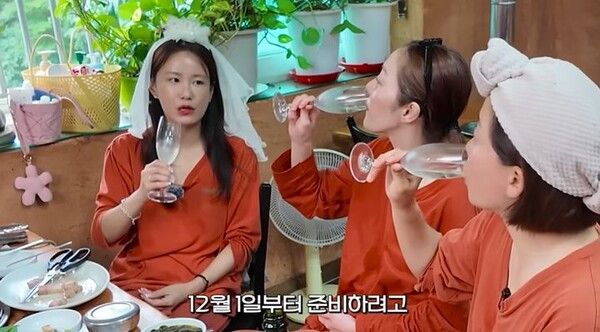 영상에는 황보라, 김지민, 정이랑이 출연해 찜질방과 식당에서 결혼·육아 이야기를 나눴다.