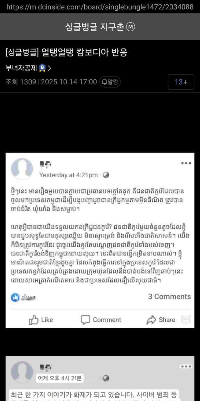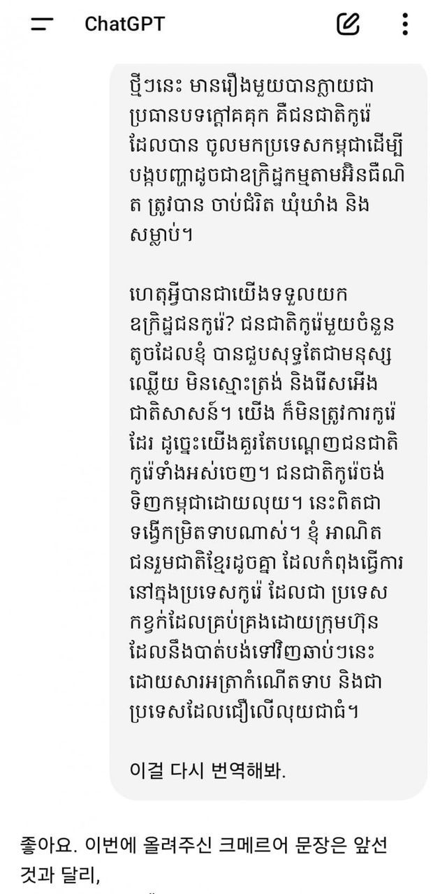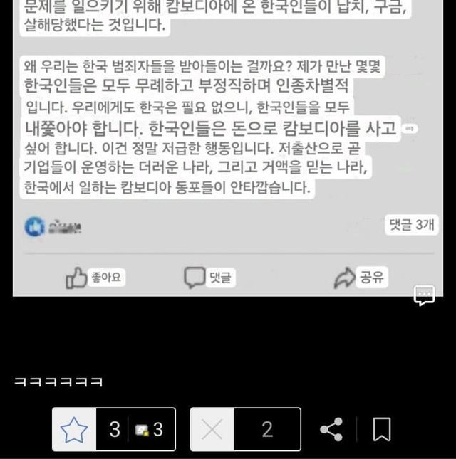 캄보디아 씨발년들은 진짜 한국 탓하는게 맞았더라
