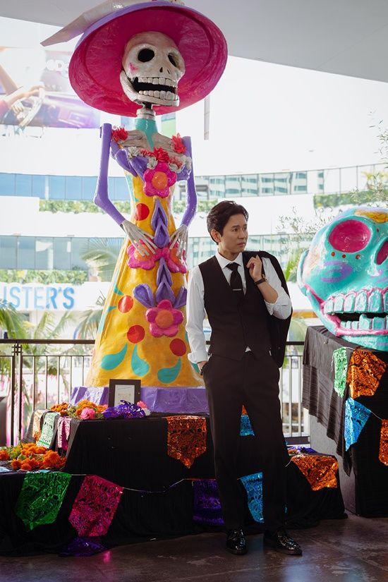 김민종, 예지원의 유머러스한 호흡은 돌비시어터 인근 쇼핑몰에서 촬영애서도 이어졌다. '할로윈'을 연상시키는 대형해골 조형물 앞에서 두 사람은 팝아트적인 감각을 드러냈다.