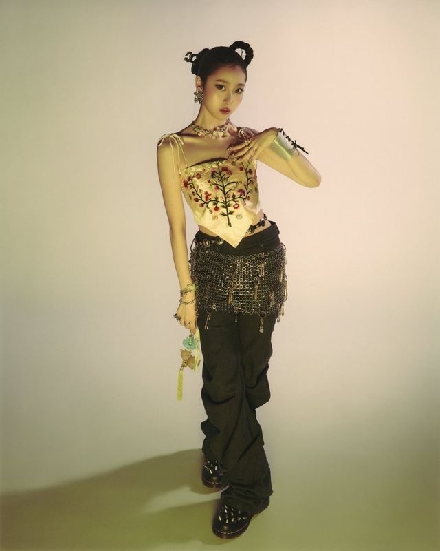공개된 사진 속 VVUP은 색색의 조명 아래, 신비롭고 당당한 매력으로 컬러풀 비주얼을 발산했다. 특히, VVUP은 한국의 전통적인 올림 머리와 장신구를 비롯해 투스젬, 네일 아트 등 힙한 현대적 디테일을 더해 눈길을 끌었다.