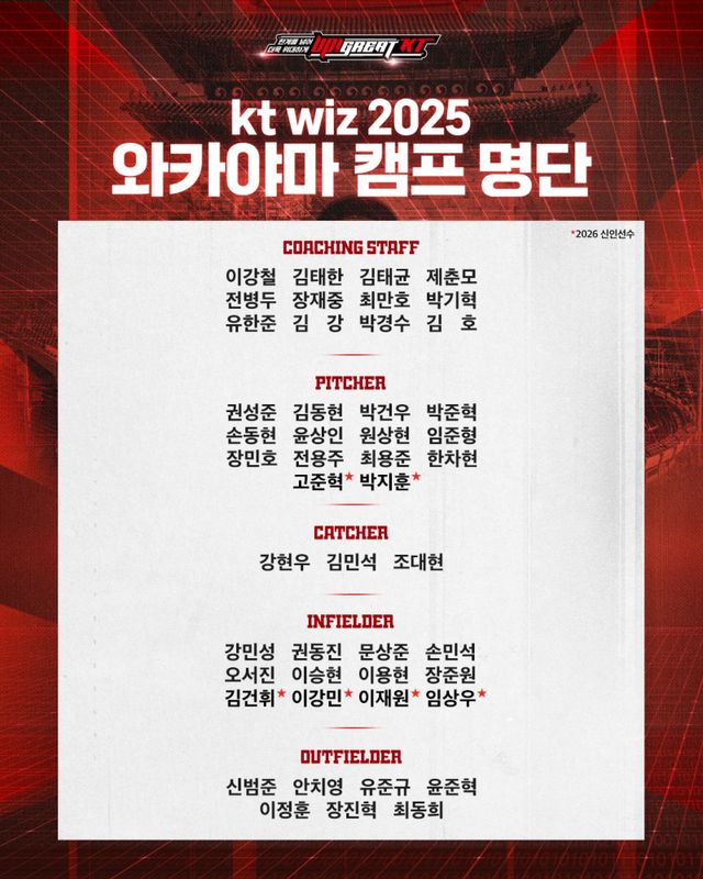 한편, 마무리 캠프에는 투수 김동현, 박건우, 내야수 오서진 등을 비롯해 2026년 신인 6명(투수 박지훈, 고준혁, 내야수 이강민, 김건휘, 임상우, 이재원)도 참가한다.