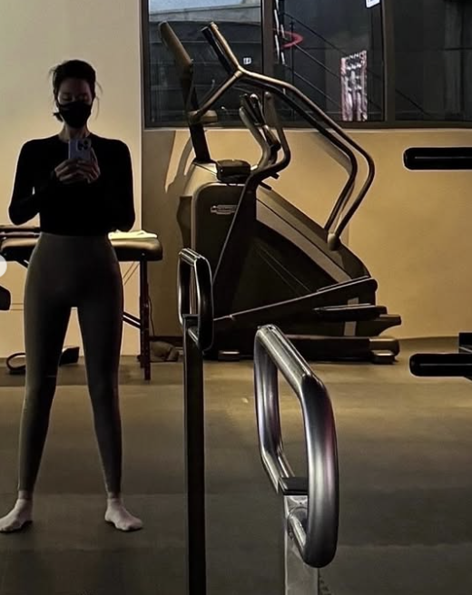 공개된 사진 속 김혜수는 모자를 쓴 채 편안한 일상 모습을 보이거나, 운동복 차림으로 헬스장 거울 앞에서 셀카를 찍고 있다.