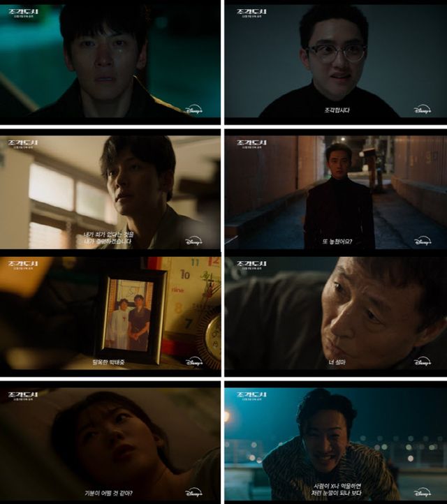 오는 11월 5일 첫 공개하는 디즈니+ 시리즈 ‘조각도시’는 평범한 삶을 살던 태중(지창욱 분)이 어느 날 억울하게 흉악한 범죄에 휘말려 감옥에 가게 되고, 모든 것은 요한(도경수 분)에 의해 계획되었다는 것을 알게 되면서 그를 향한 복수를 실행하는 액션 드라마다.