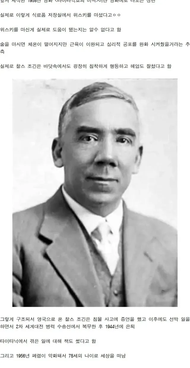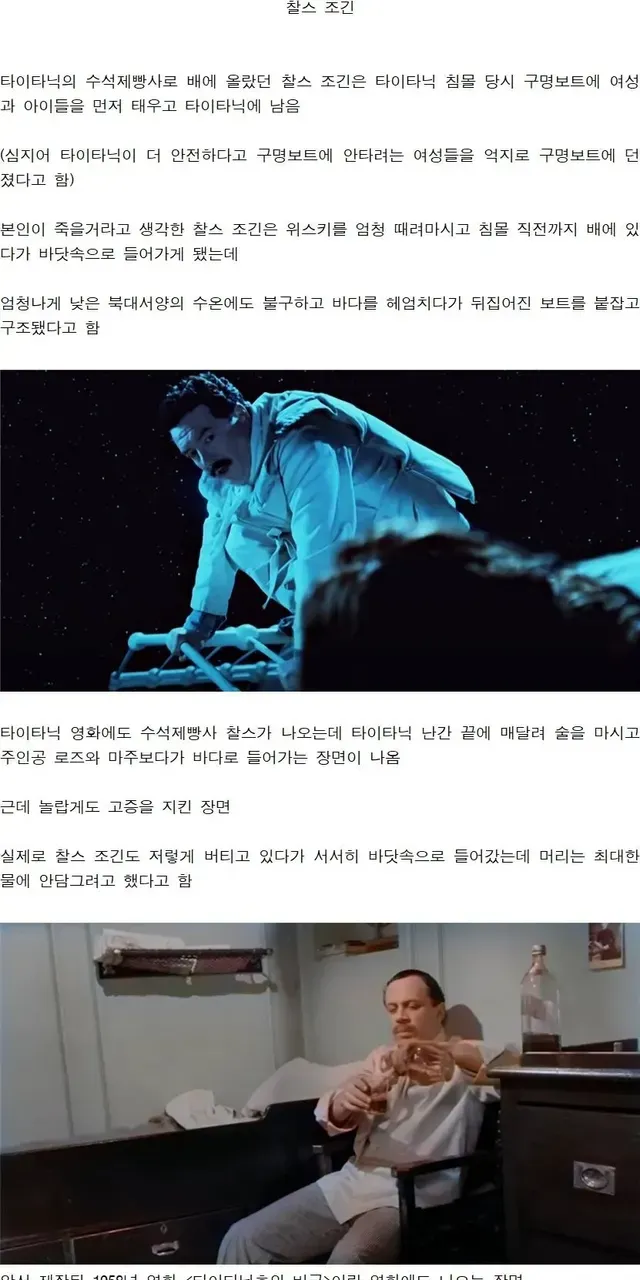 타이타닉 침몰 당시 사람들 구조하고 죽을줄 알고 위스키 왕창 마시고 생존한 제빵사,,