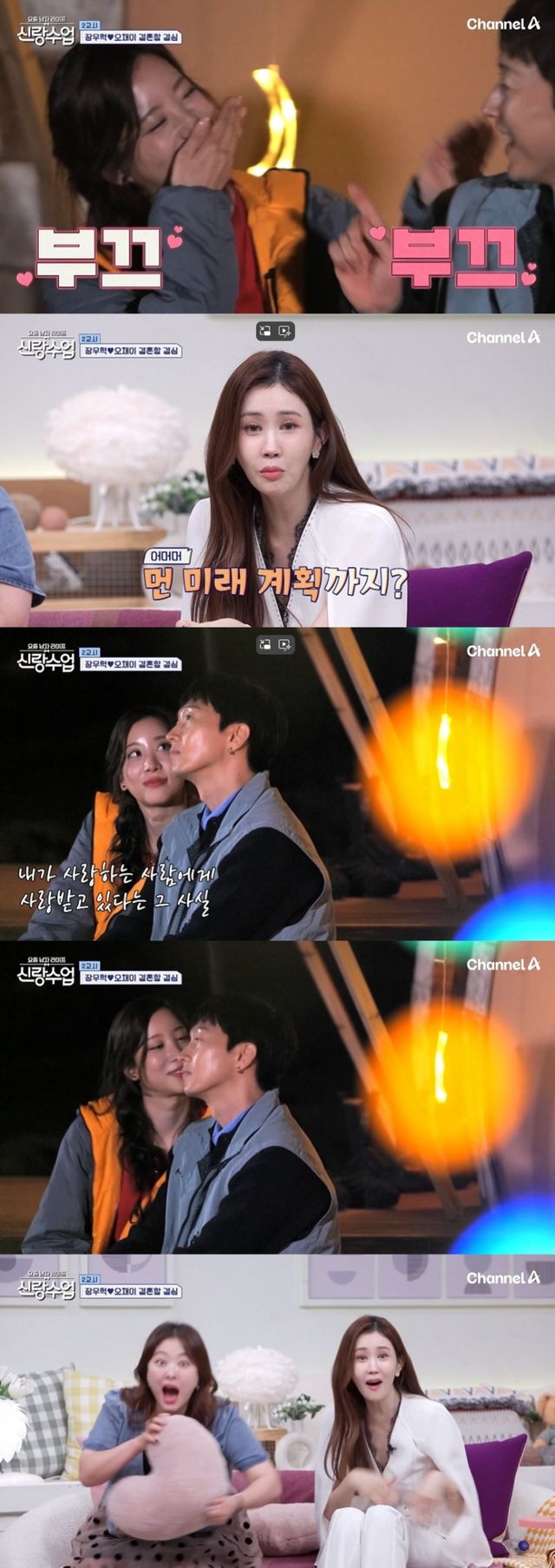 15일 선공개된 채널A 예능 ‘요즘 남자 라이프–신랑수업’(이하 ‘신랑수업’)에서는 장우혁이 오채이에게 “들려주고 싶은 노래가 있다”며 들국화의 명곡 ‘매일 그대와’를 선곡했다. 노래가 흐르자 두 사람은 텐트 앞에서 손을 잡고 마주 보며 귀엽게 춤을 췄고, 이를 지켜보던 VCR 속 패널들은 “너무 설렌다”, “그림이 너무 예쁘다”며 탄성을 터뜨렸다.