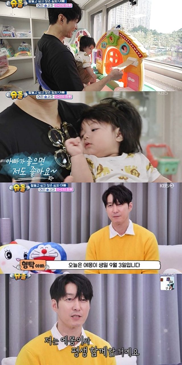 15일 방송된 KBS2 예능 ‘슈퍼맨이 돌아왔다’(이하 ‘슈돌’)에서는 심형탁이 아들 하루와 함께 ‘에몽이’ 생일을 맞아 특별한 하루를 보내는 모습이 그려졌다.