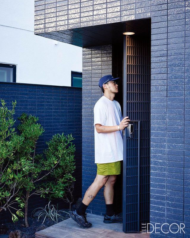 아이들 방은 스튜디오 아르가 맹그로브와의 협업에서 얻은 1인실 스케일 아이디어를 참고해 설계됐다. 집 안의 모든 수납 시스템에는 문을 여닫는 반경을 줄이기 위해 슬라이딩 도어를 적용했다. 세 아이의 방이 있는 2층에서 세탁물을 떨어트리면 1층의 세탁실에 바로 담기는 재미있는 구멍도 있다. 단순한 편의 장치를 넘어 삶의 리듬을 건축으로 해결하려는 태도가 엿보인다. 도어 핸들은 모두 건축가 알바로 시자 디자인, 거실 커튼과 소파를 비롯해 패브릭은 모두 크바드랏, 수전은 황동 소재로 제작된 볼라의 컬렉션으로 선택하는 등 곳곳의 하드웨어에도 치밀한 큐레이팅이 더해졌다. 집 외벽에도 동 소재의 샤워 수전을 설치한 것이 인상적이다. “아이들이 마당에서 뛰놀다 들어와 그대로 씻을 수 있는 수전이에요. 제주도에 살면 꼭 필요한 장치이고, 제주도이기에 동파 위험이 거의 없어 선택할 수 있었던 디테일이죠.” 제주의 바람과 비에 부식되며 점차 색이 변할 이 수전은 계절이 남긴 흔적처럼 앞으로 천천히 쌓아갈 시간과 비례해 이 집에 스며들 것이다.