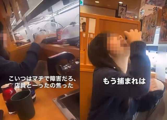 15일 요미우리, 닛케이 등 현지 언론에 따르면 쿠라스시에 방문한 한 여학생이 회전대 위에 놓인 초밥을 맨손으로 만지는 영상이 올라왔다.