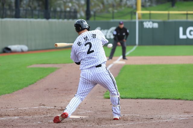 그럼에도 타석에 들어선 건 경기 감각 회복 차원이다. 문보경은 지난 1일 NC 다이노스전 이후 이날 청백전이 2주 만의 실전 경기였다. 오는 25일부터 시작하는 KS를 앞두고 실전 감각 회복이 중요한데, 실제 타석에서 투수가 던지는 145㎞ 내외의 빠른 공을 체감하기 위한 차원이다.