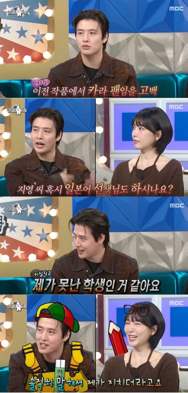배우 강하늘이 그룹 '카라' 출신 배우 강지영이 해준 일본어 과외를 포기했다고 말했다.