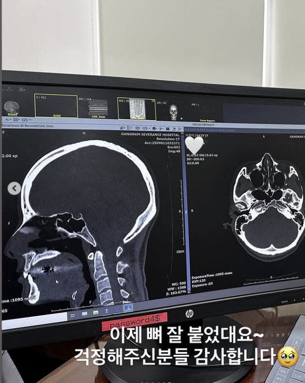 또 다른 사진에서는 치료 경과를 담은 엑스레이 사진을 게시해 뼈가 잘 붙었다고 회복을 알렸다.