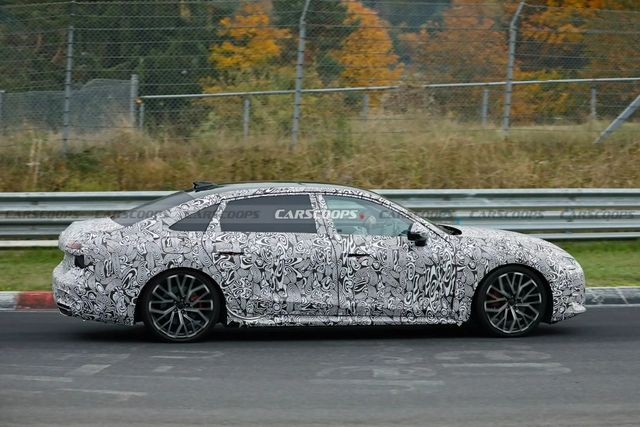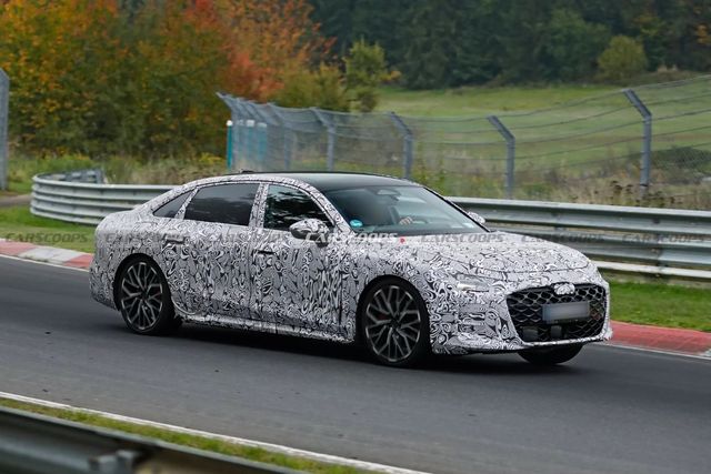 최근 뉘르부르크링 서킷에서 포착된 2026년형 A6 L은 기존 A6의 디자인을 기반으로 차체 길이와 휠베이스를 늘린 롱휠베이스 버전이다. 측면 비율이 자연스러워 보이지만, 뒷문이 길어지고 루프가 다소 평평해진 점이 눈에 띈다.