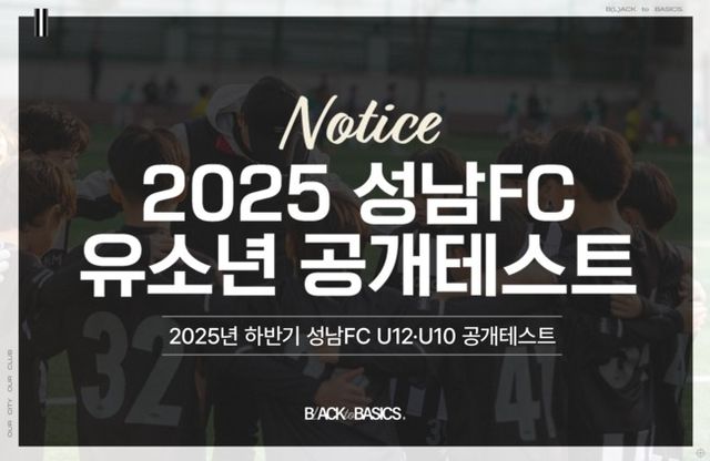 [인터풋볼=박윤서 기자] 성남FC가 2025년 하반기 U12·U10 유소년 공개테스트를 실시한다.