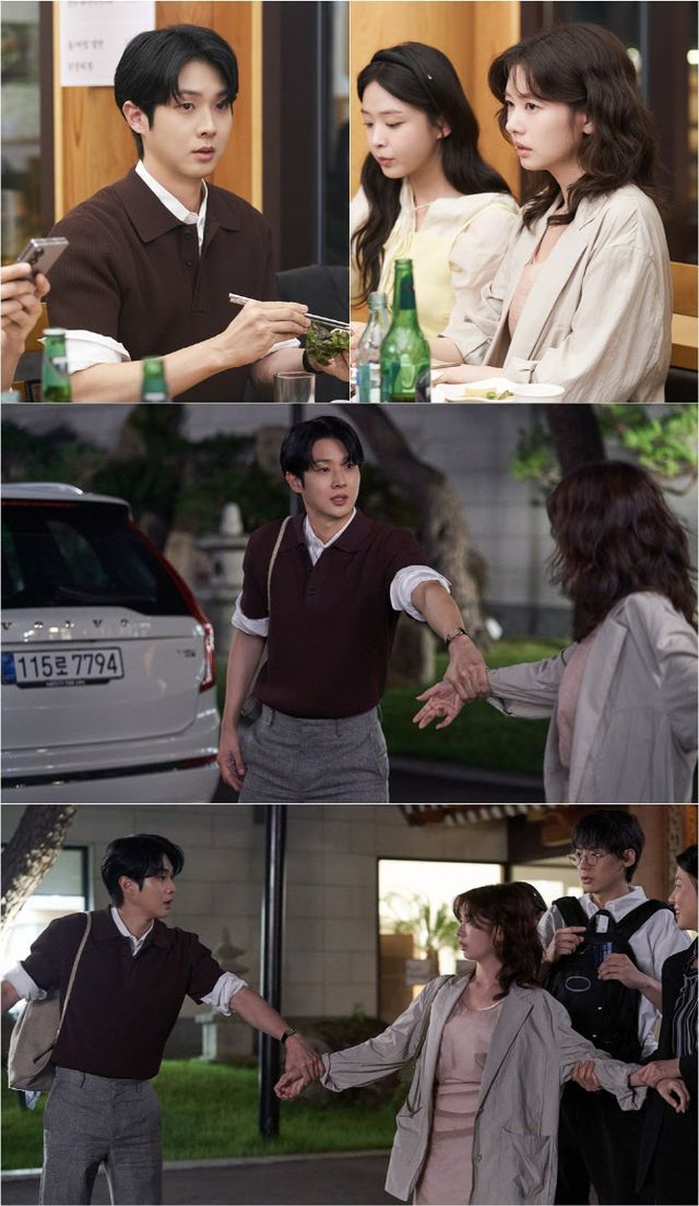 16일 공개된 사진 속 두 사람은 팀원들 몰래 눈으로 대화를 나누며 아슬아슬한 긴장감을 자아내고 있다. 특히 우주는 쌈을 싸는 것도 멈춘 채 당황한 모습을 보여 궁금증을 높인다.