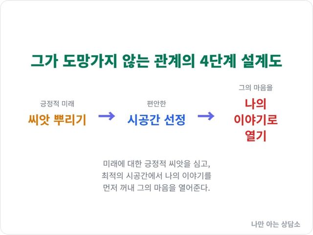 이제 그가 도망가는 대신, 당신의 옆자리에 앉아 진지하게 대화에 임하게 만드는 구체적인 설계도를 펼쳐보자.