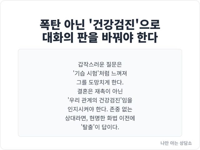 이것은 결혼이라는 결승선을 통과하기 위한 재촉이 아니라, ‘우리 관계의 건강검진’에 가깝다.