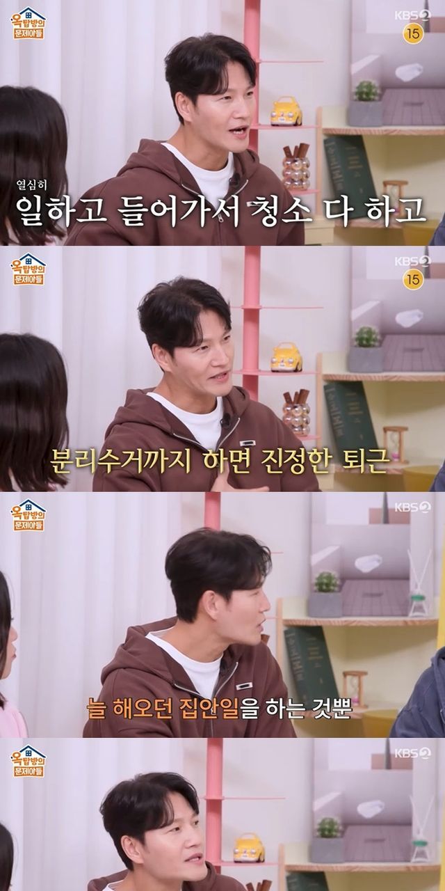 이에 김종국은 "아침부터 열심히 일하고 집에 들어가서 청소 다 하고, 분리수거 다 한다"고 신혼 일상을 전했다.