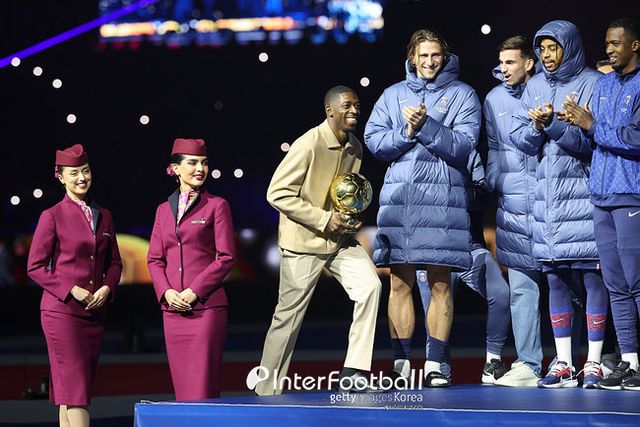 발롱도르 수상에 성공했다. 뎀벨레는 1,380점을 획득하며 1위 자리에 올랐는데 1,059점으로 2위에 오른 야말과 무려 321점 차이가 났다. ‘포디움’에 포함된 비티냐는 703점을 얻었고, 살라가 657점으로 그 뒤를 이었다.