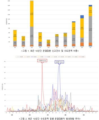 올해는 최근 10년 감시기간 중 2018년 다음으로 온열질환자가 많이 발생했으며, 이른 더위로 인해 7월 환자수가 1,169명으로 급증하여 수도권 전체 환자의 64.7%를 차지했다.