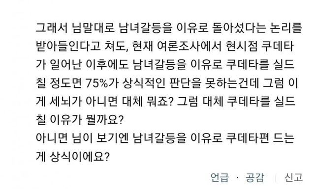 이대남 지방선거에서 야당 투표하겠다 75.2%