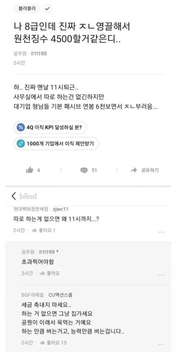 블라인드에서 욕먹고 있는 어느 공무원,,