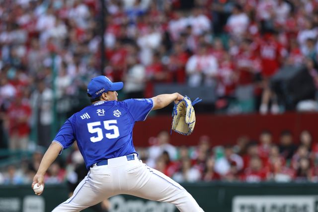 그로부터 아홉 달 뒤, 배찬승은 약속을 지켰다. 정규시즌 19홀드를 기록하며 위기의 삼성 불펜에 화려하게 등장한 그는 생애 첫 가을야구에서도 신인답지 않은 '배짱투'로 불펜의 '중심'으로 자리 잡았다. NC 다이노스와의 와일드카드 결정전(WC)에서 치른 포스트시즌(PS) 데뷔전에서 1이닝 2탈삼진 무실점한 그는 SSG 랜더스와의 준플레이오프(준PO)에선 3경기에 나와 2이닝 2실점(1자책)했다.