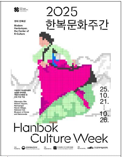 문화체육관광부(장관 최휘영, 이하 문체부)는 한국공예·디자인문화진흥원(원장 장동광, 이하 공진원)과 함께 10월 21일(화)부터 26일(일)까지를 ‘2025 한복문화주간’으로 지정하고 전국 주요 거점에서 다양한 한복문화 행사를 진행한다.