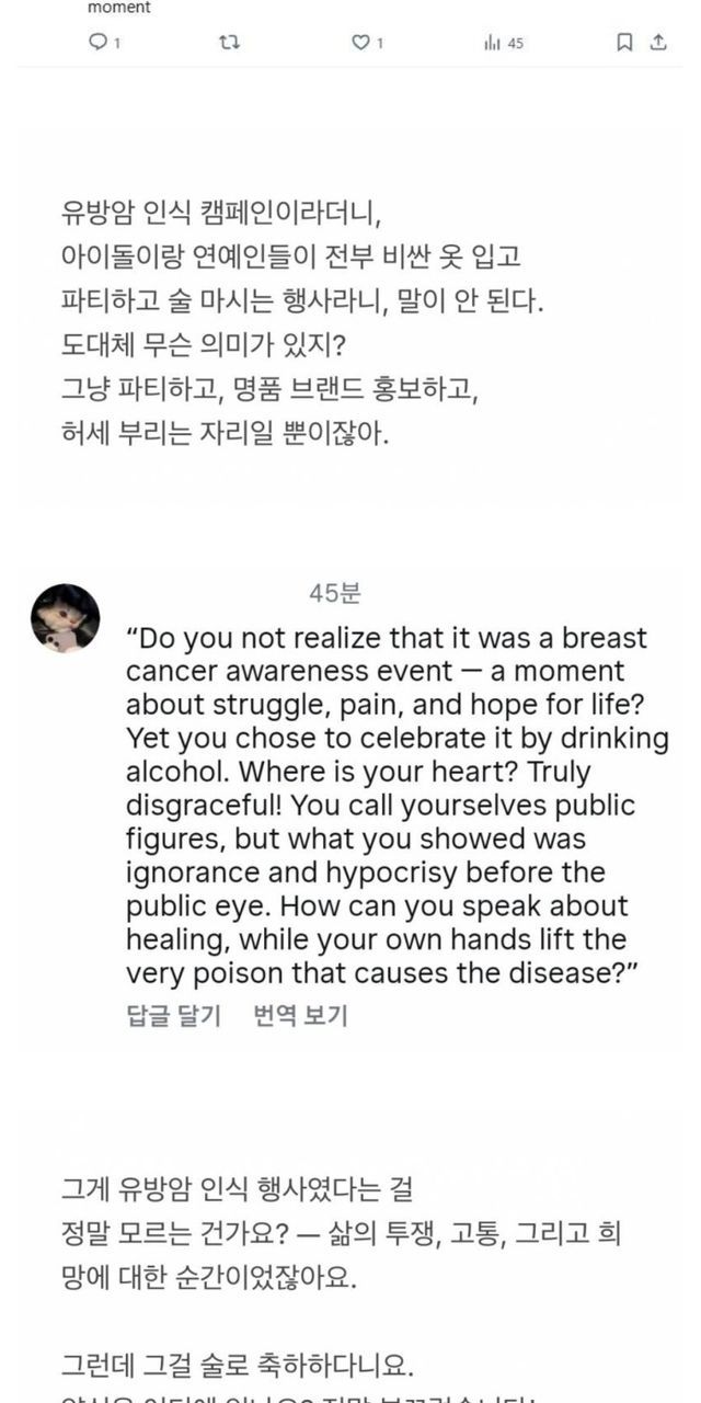 그냥 지들 파티하러간건데 왜 굳이 유방암이라는 이름을 붙인건지 이해가 안가네요