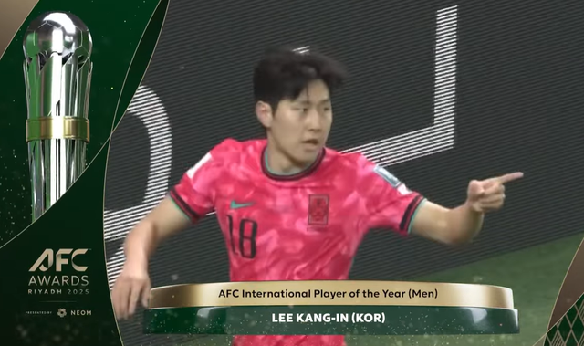 특히 직전 수상자가 2003년 손흥민이었다. 결국 손흥민(2019년)~김민재(2022년)~손흥민(2023년)~이강인(2025년)으로 '올해의 국제 선수상'을 한국 축구가 4년 연속 타는 셈이 됐다.