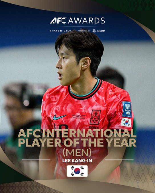 (엑스포츠뉴스 윤준석 기자) 한국 축구의 새로운 아이콘 이강인이 아시아축구연맹(AFC)이 선정하는 '2025 AFC 올해의 국제 선수상'을 수상했다.