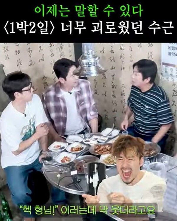 뉴시스 보도에 따르면, 최근 유튜브 채널 '짠한형 신동엽'에는 '이제는 말할 수 있다! 이수근이 밝히는 '1박2일' 찐 비하인드'라는 제목의 영상이 공개됐다.