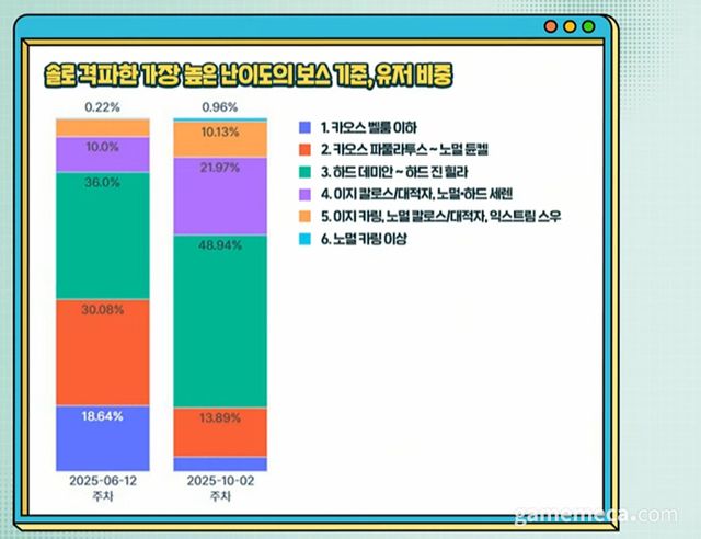 ▲ 솔로 격파한 가장 높은 난도 보스 기준 유저 비율 (자료출처: 메이플스토리 공식 영상 갈무리)