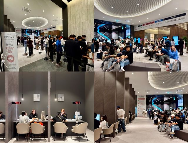17일 본지는 김포시 사우동 견본주택 현장을 방문했다. 개관 이틀째였지만 방문객은 더욱 붐볐다. 평일임에도 대기줄이 길게 늘어섰고, 내부 상담석은 방문객들로 가득 찼다. 이곳에는 대가족 단위는 물론, 신혼부부들의 방문도 눈에 띄었다.