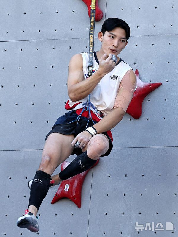김동준(타기클라이밍센터)은 결승 경기 도중 미끄러져 완등에 실패했다.